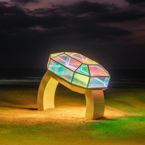 風日夜吹著一顆躺在沙灘上的閃亮戒指,這不僅是裝置,更是一座「迷你圖書館」。若知識無價,記載著屏東記憶的書籍,便是在海口沙灘上最耀眼的寶石。 內藏三本在地文學,字句間滿是屏東的氣息。走進戒指,在幻彩光影中翻閱,文字如同鑽石切面,折射出屏東的光與影。這是一座旅人的避風港,邀請你在呼嘯風聲中拾起一首詩,感受在地文學如寶石般璀璨的價值。