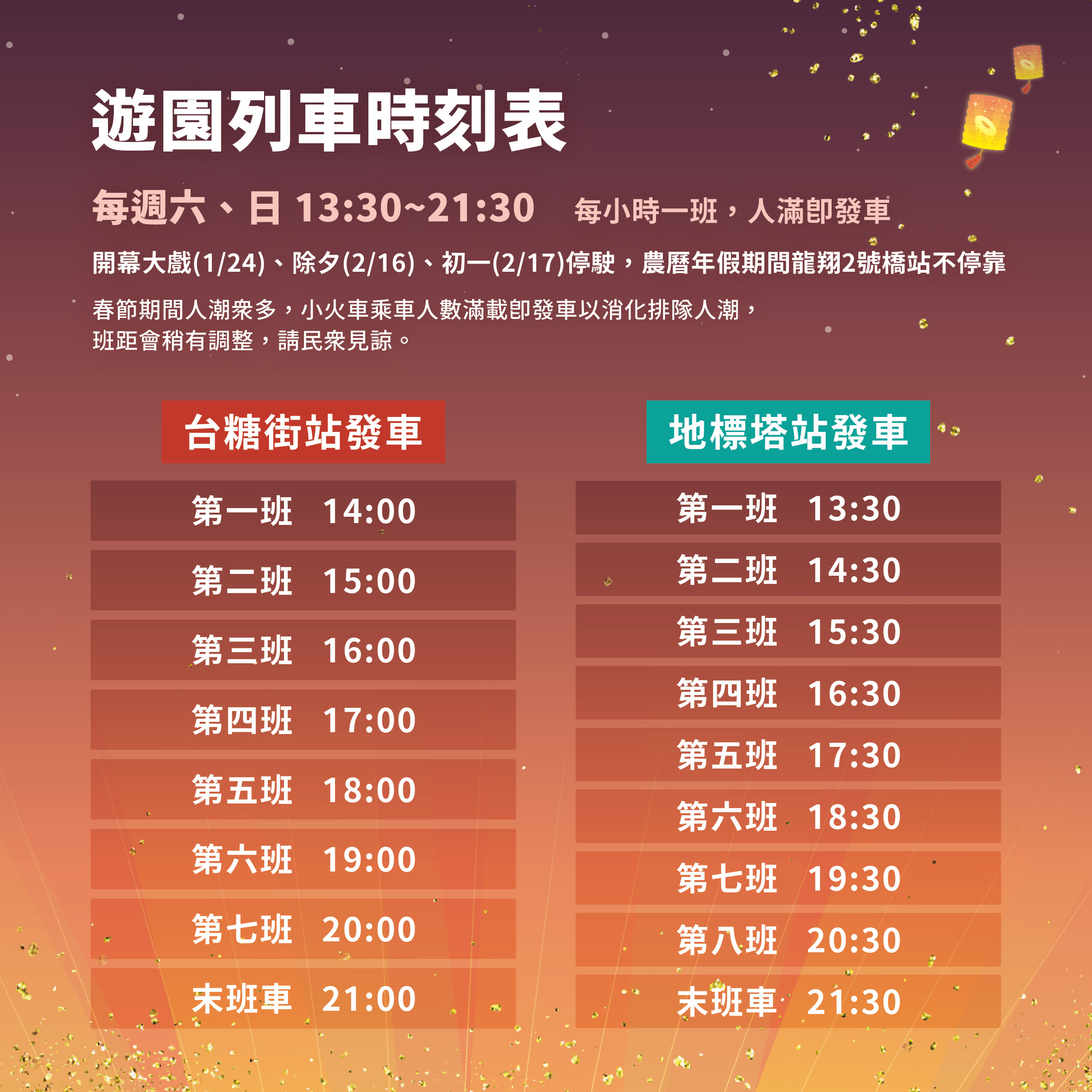 每週六、日,及2/19(初三)~20(初四)